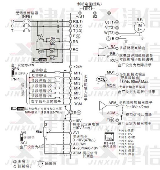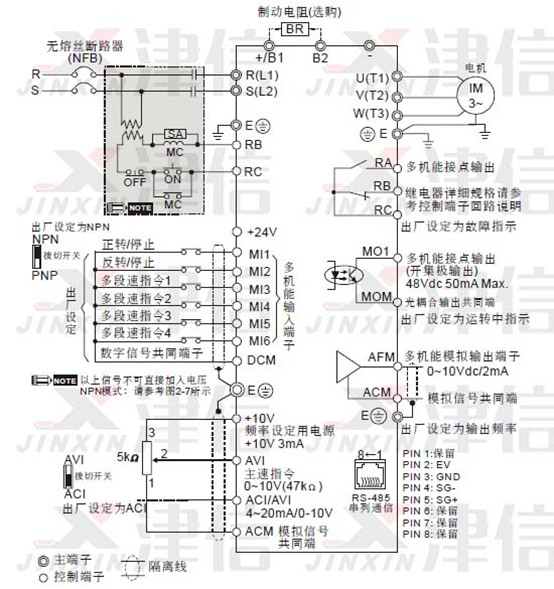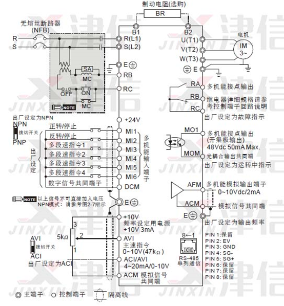 在臺達VFD-E變頻器安裝調試過程中,根據臺達VFD-E變頻器不同的型號,接線方式也略有不同,詳細如下: