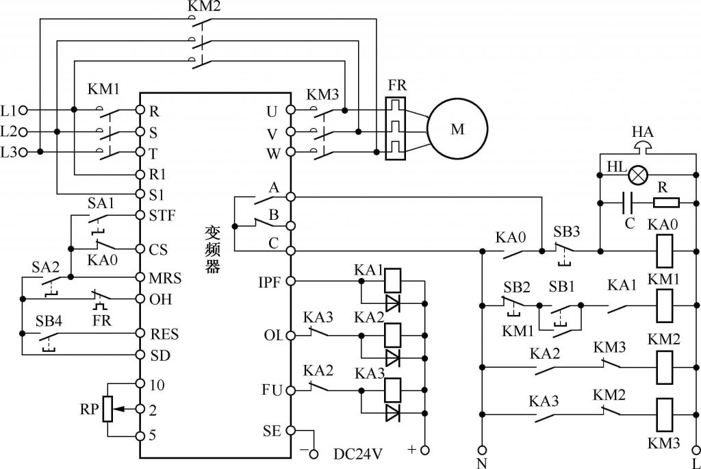 維修變頻器首先要能夠看懂并繪制變頻器電路圖,要想看懂變頻器電氣原理圖,首先要搞清楚其中的電氣原理及其符號(hào)所表示的含義。