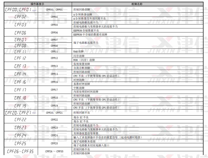 安川A1000變頻器的CPF故障主要是由于控制回路引起的,包括35個(gè)故障信號(hào)。