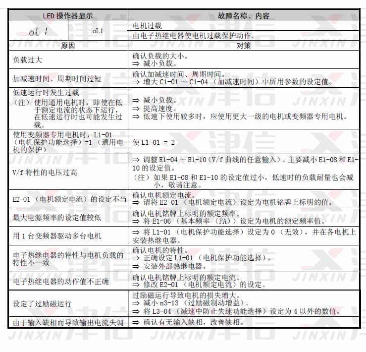 對(duì)策∶檢出故障后,請(qǐng)正確設(shè)定參數(shù)以排除故障原因。在沒(méi)有正確設(shè)定參數(shù)之前,變頻器將無(wú)法起動(dòng)。